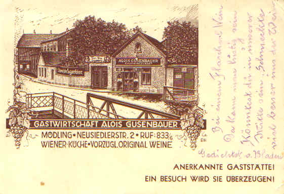 Werbepostkarte Gastwirtschaft Alois Gusenbauer Neusiedlerstr. 2
