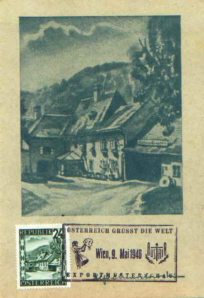 Maximumkarte 24 Groschen Marke, Stempel der Exportmusterschau Wien 9. Mai 1946